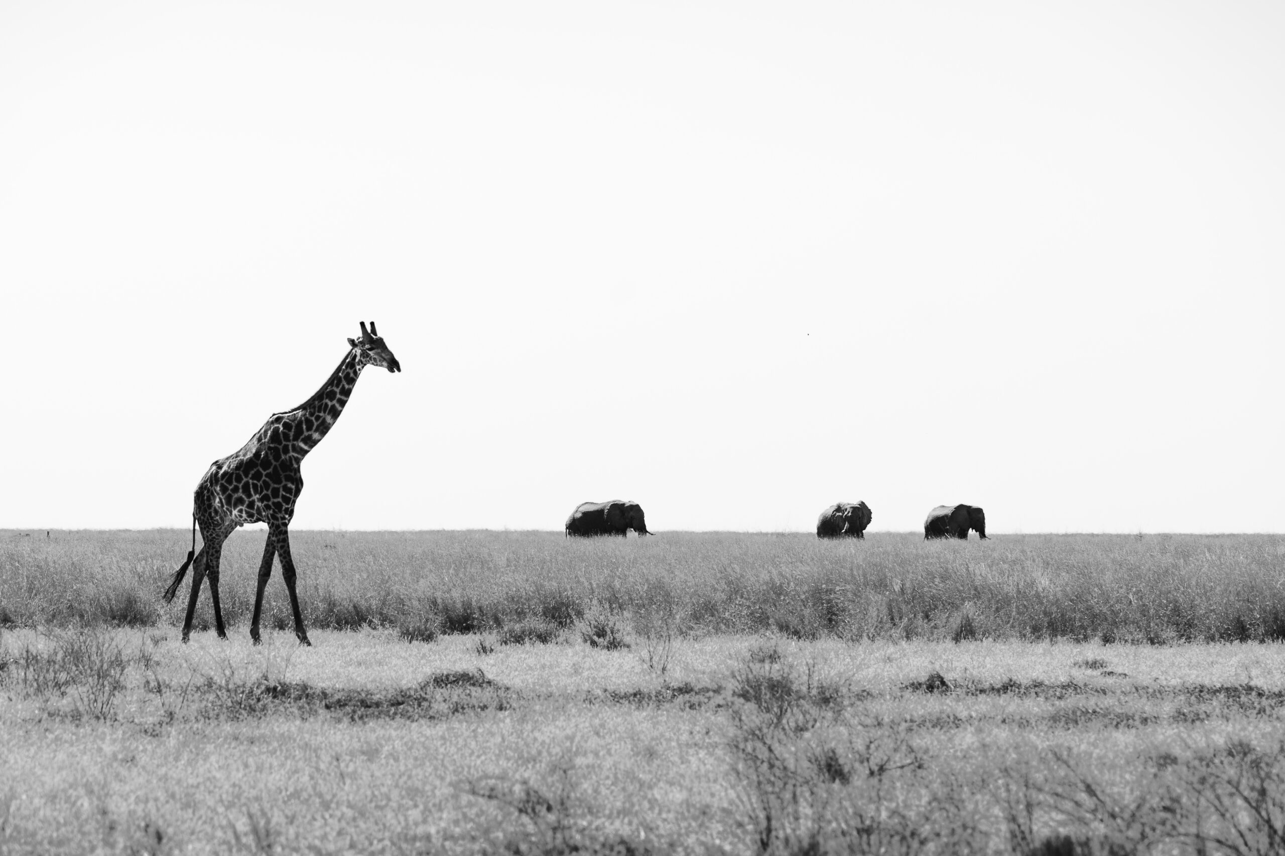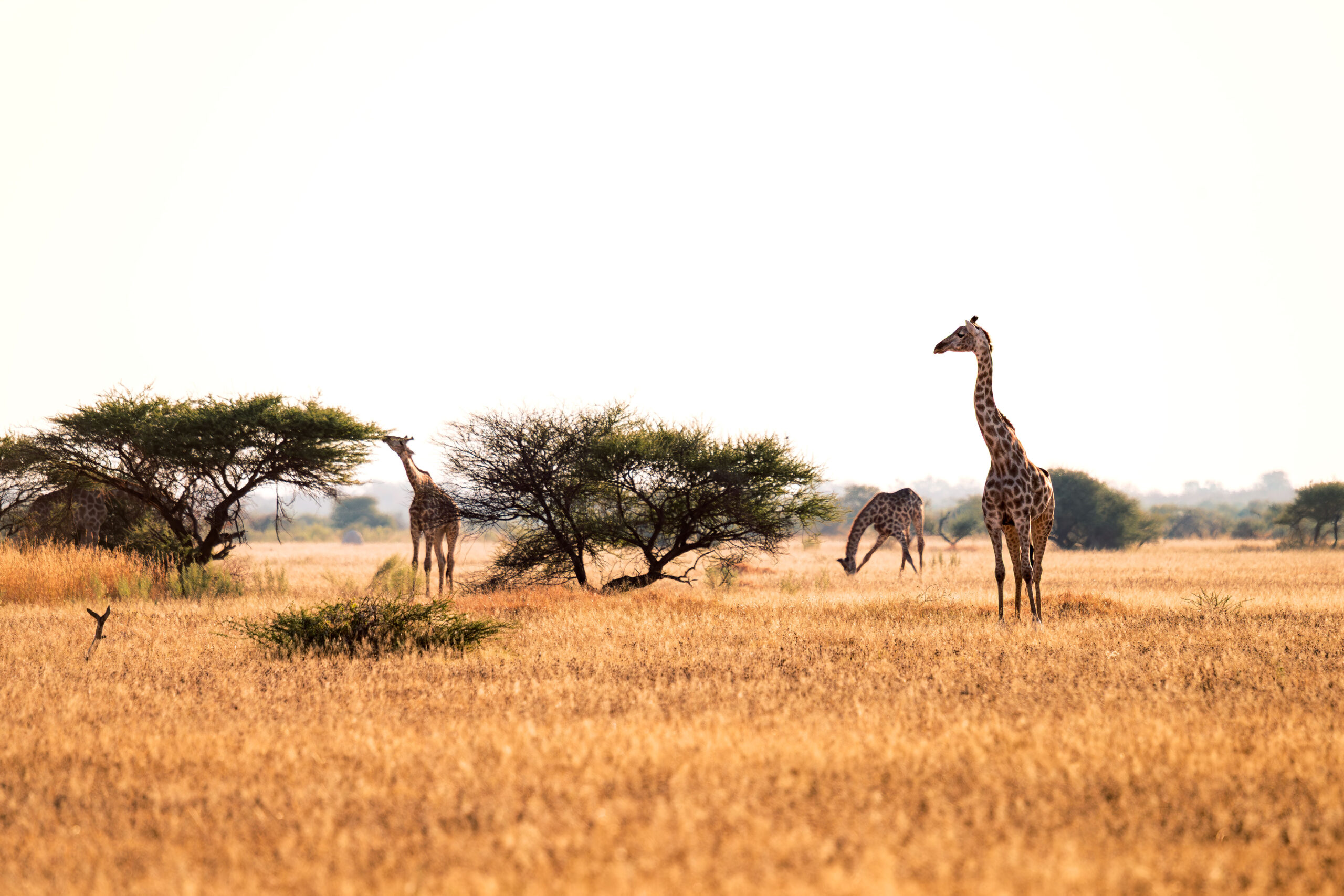 Enfin, Nxai Pan, avec ses paysages lunaires et ses vastes étendues de sel, révèle une autre facette du Botswana, où girafes et oryx évoluent dans un décor aussi rude que fascinant. Lors de la saison des pluies, cet environnement austère se transforme temporairement en un paradis verdoyant, attirant gnous et zèbres lors de leur grande migration.