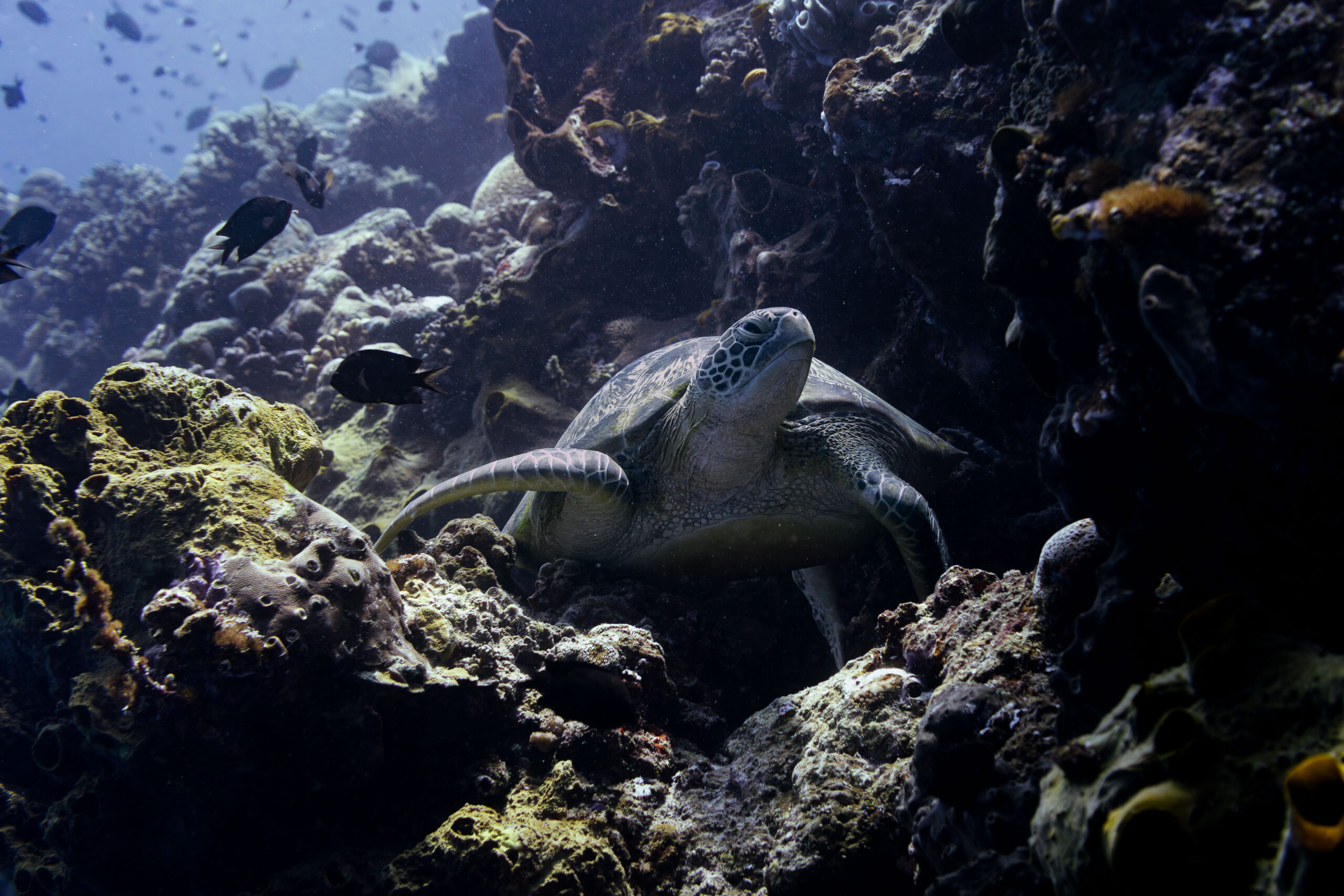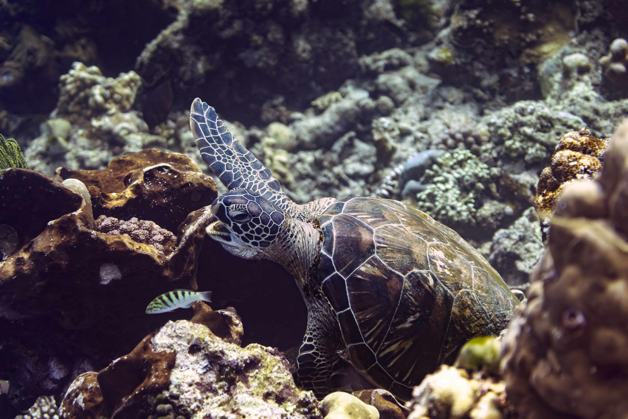 Les eaux indonésiennes font partie du Triangle de Corail (ou « Amazonie des Océans ») : cette région marine abrite plus de 75 % des espèces mondiales de coraux et possède plus de 2 000 espèces de poissons de récif. Ces écosystèmes de récifs coralliens servent d’habitat pour de nombreuses espèces marines, mais aussi de nurserie pour les poissons et de lieu de reproduction pour certaines espèces menacées comme les tortues vertes et les dugongs.